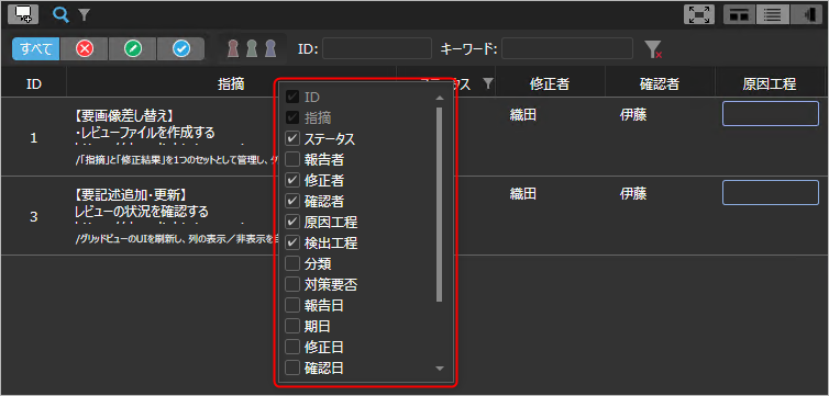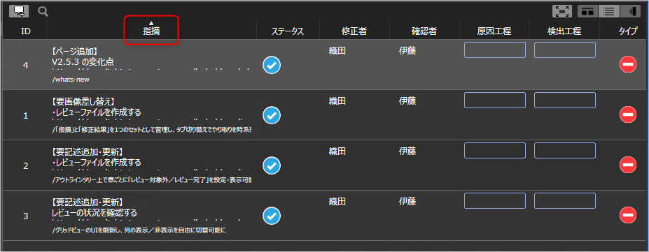 - Issues are displayed in a tile format, and the background color differs depending on the correction status, allowing you to visually grasp the correction status.